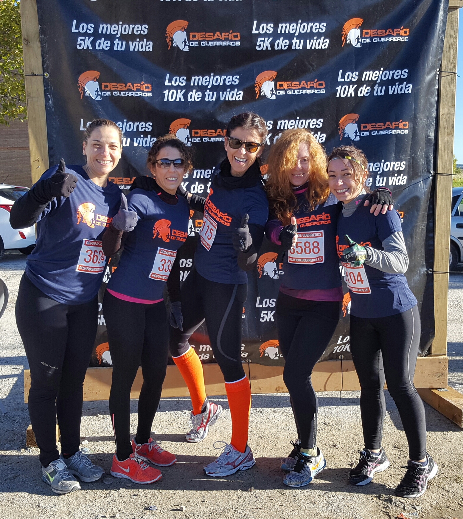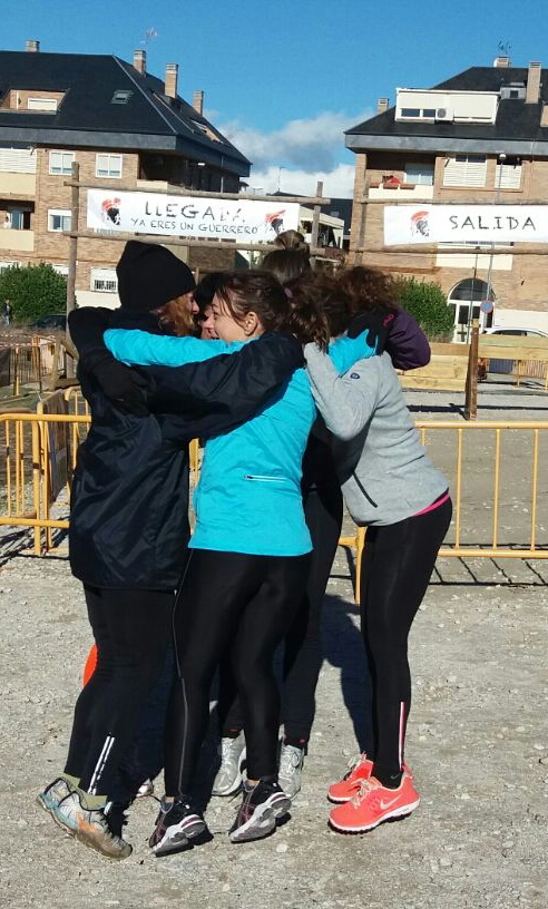 Y allí estábamos, a las 9:30 de la mañana del pasado domingo, después de un sábado donde no parecía que fueran a cerrar el grifo de la lluvia, con un sol radiante y un frío igual de potente. Las cinco, abrigadas hasta las orejas, corriendo a por nuestros dorsales, poniéndonos el chip, organizándonos para subir los muros, pensando que estaríamos mejor tomando un café calentito con tostadas, Manolo ve y mueve el coche que cuanto más cerca mejor, vamos a hacernos una foto...y llegaron las 11:00. Nuestra hora de salida.