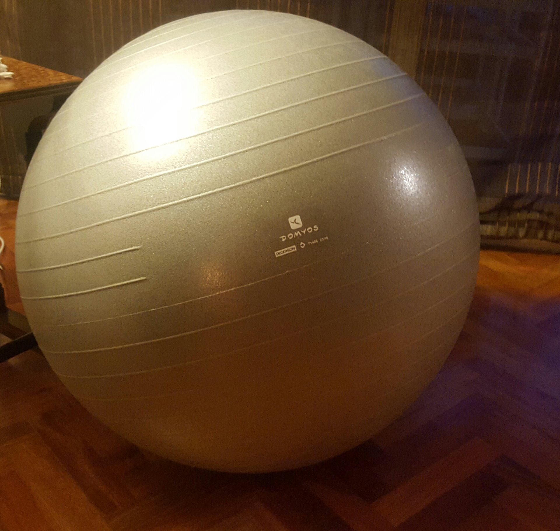 ¡Ah! Me olvidaba de mi querida fitball, de 65 cms es suficiente para mí, y puedes usarla en un motón de ejercicios; para hacer abdominales, para usarlo como banco en los press de pecho, puedes usarla para hacer pierna, enterita, y para estirar. Es perfecta y encima solo cuesta 7,99 euros (cod 8328728)