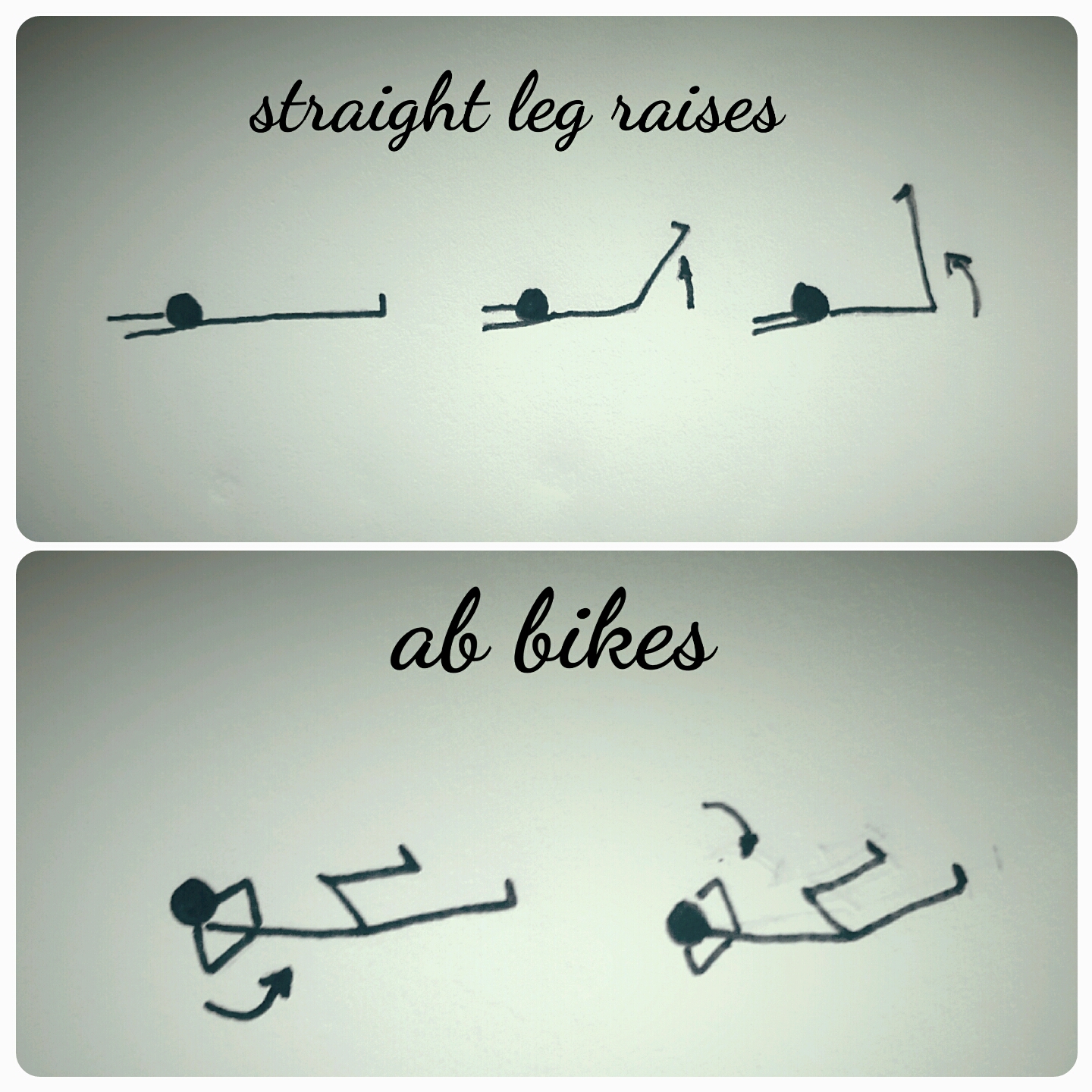 Ab bikes: 40 repeticiones (20 con cada pierna)